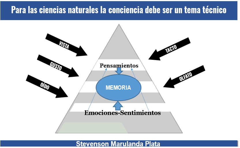 La conciencia es el procesamiento mental de la interacción del yo animal con su entorno. Cuando la biología animal decidió inventar el movimiento voluntario se vio obligada a inventar la conciencia. De este modo, el ADN teniendo como espejo la física y la química de cada entorno, construyó el yo de cada individuo dotando a las especies de sentidos, memoria, emociones, sentimientos y pensamientos.